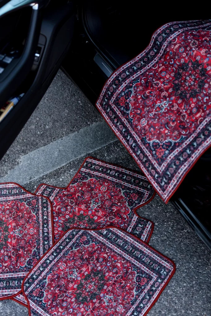 Featuring a deep red base with bohemian-style patterns, they add a retro and artistic flair to your car’s interior.